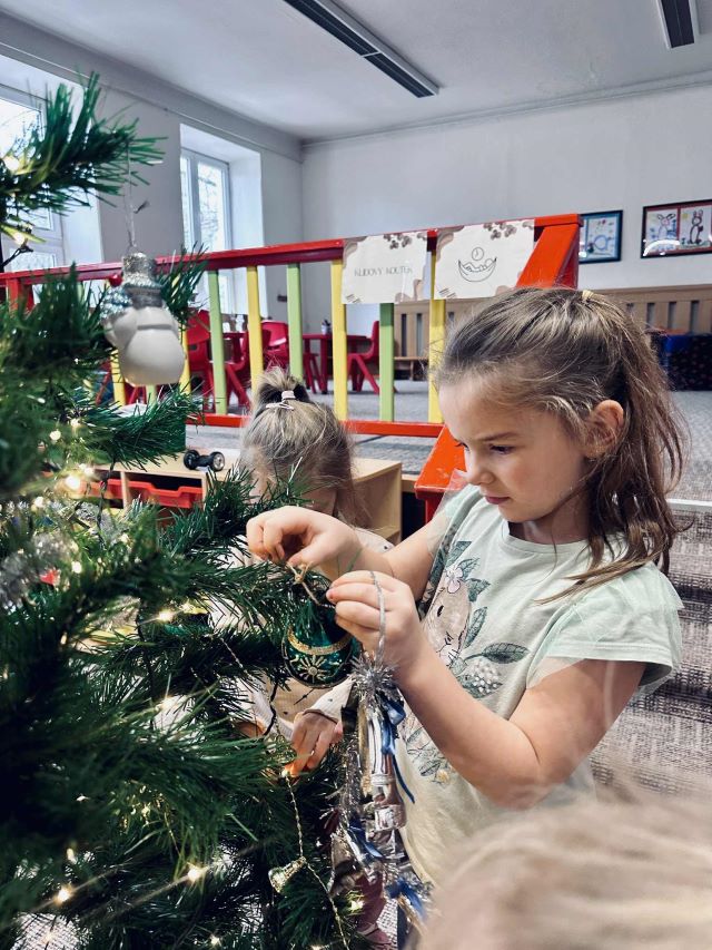 V mateřské i základní škole už máme nazdobený vánoční stromeček. Zdobení proběhlo v rámci projektu Velcí pomáhají malým, kdy se starší žáci zapojili do společné aktivity s mladšími dětmi. Společně zavěšovali ozdoby, upravovali světýlka a dotvářeli vánoční atmosféru v prostorách školy.